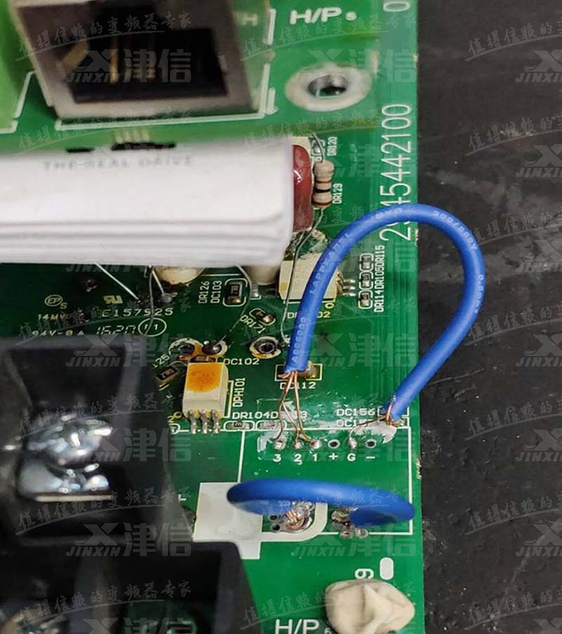將電流傳感器拆除做單板測試,送電后仍然報警cd3.1,根據(jù)電流傳感器線路,將板卡上的G點(diǎn)和1,2,3三個點(diǎn)短接(如下圖3所示) 傳感器型號:6900,(如下圖4所示)