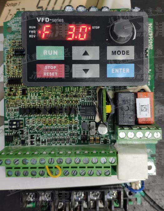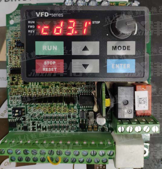 用戶送修一臺臺達(dá)C200系列變頻器到上海津信維修服務(wù)中心(如下圖1),送電顯示cd3.1(如下圖2所示),不可復(fù)位,斷電重新上電后依舊報警,查看C200系列說明書可知,該故障為W相電流偵測異常。