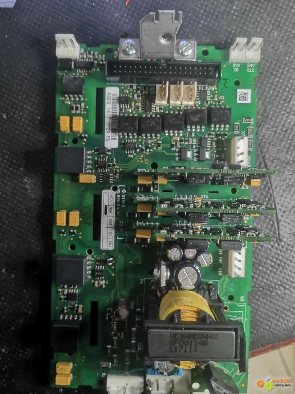 690V的驅動板首先修好電源,才發現次級驅動變壓器全部掛了,二次電源修復正常以后,上電馬上就跳出一個f7的故障,這個故障的意思是,輸出飽和的意思。