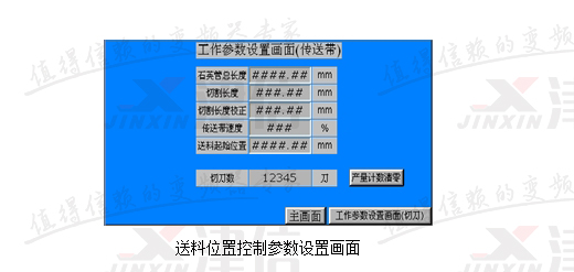 改造系統(tǒng)采用三臺(tái)Danfoss變頻器和兩塊MCO305,以及一個(gè)臺(tái)達(dá)HMI。系統(tǒng)采用RS485通訊。主機(jī)旋轉(zhuǎn)采用4kW變頻器直接拖動(dòng),通過(guò)HMI直接設(shè)定其運(yùn)行頻率。送料位置控制參數(shù)如下圖所示。這些參數(shù)在變頻器第19組參數(shù)開放出來(lái),之所以采用HMI,主要是為了方便用戶進(jìn)行操作。
